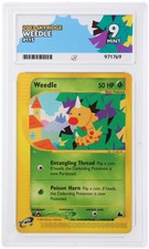 This printing is a common card, the base-tier pull (the card is labeled "Common" on the checklist). Weedle has been printed 9 times across different sets - earlier or limited printings often command premiums even when the rarity tier is identical.