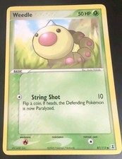 This printing is a common card, the base-tier pull (the card is labeled "Common" on the checklist). Weedle has been printed 9 times across different sets - earlier or limited printings often command premiums even when the rarity tier is identical.