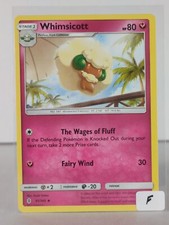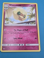Whimsicott is a Uncommon Pokémon card from the Guardians Rising Pokémon TCG set, released 2017, illustrated by Kouki Saitou. It sits at card number 91 in the Guardians Rising checklist, classified as a Fairy-type Pokémon with 80 HP and the Stage 1 subtype.