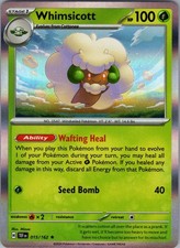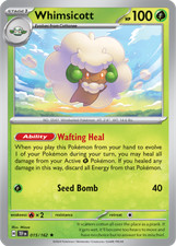 This printing is a standard rare, pulled roughly 1 per pack (the card is labeled "Rare" on the checklist). Whimsicott has been printed 9 times across different sets - earlier or limited printings often command premiums even when the rarity tier is identical.
