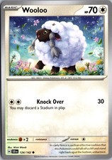 Wooloo is a Common Pokémon card from the Stellar Crown Pokémon TCG set, released 2025. It sits at card number 124 in the Stellar Crown checklist, classified as a Colorless-type Pokémon with 70 HP and the Basic subtype.
