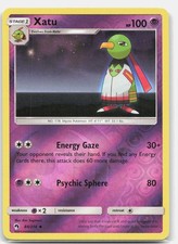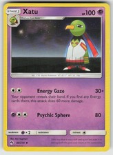 Xatu is a Uncommon Pokémon card from the Lost Thunder Pokémon TCG set, released 2018, illustrated by Ken Sugimori. It sits at card number 88 in the Lost Thunder checklist, classified as a Psychic-type Pokémon with 100 HP and the Stage 1 subtype.