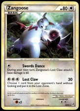 This printing is a standard rare, pulled roughly 1 per pack (the card is labeled "Rare" on the checklist). Zangoose has been printed 9 times across different sets - earlier or limited printings often command premiums even when the rarity tier is identical.